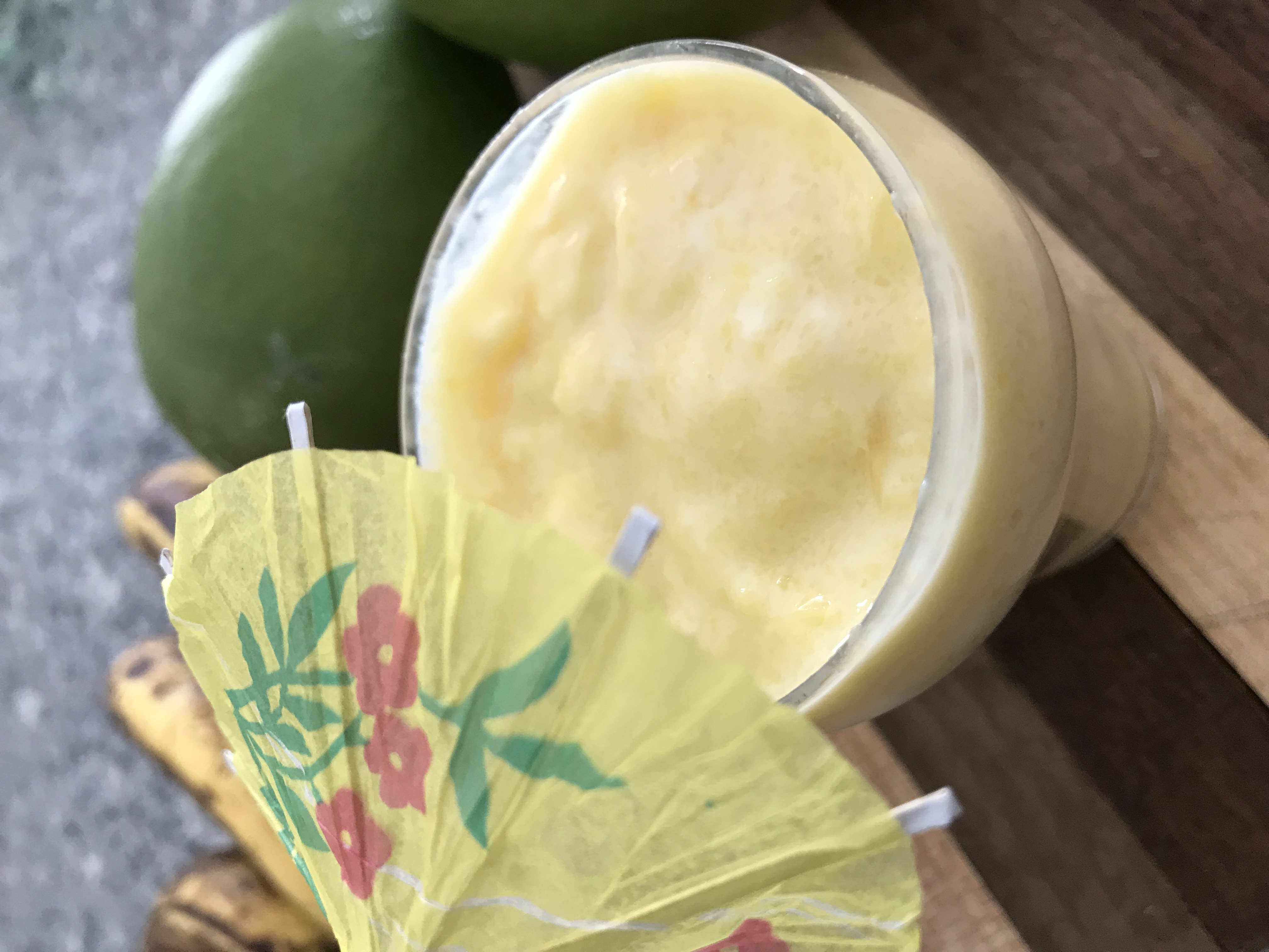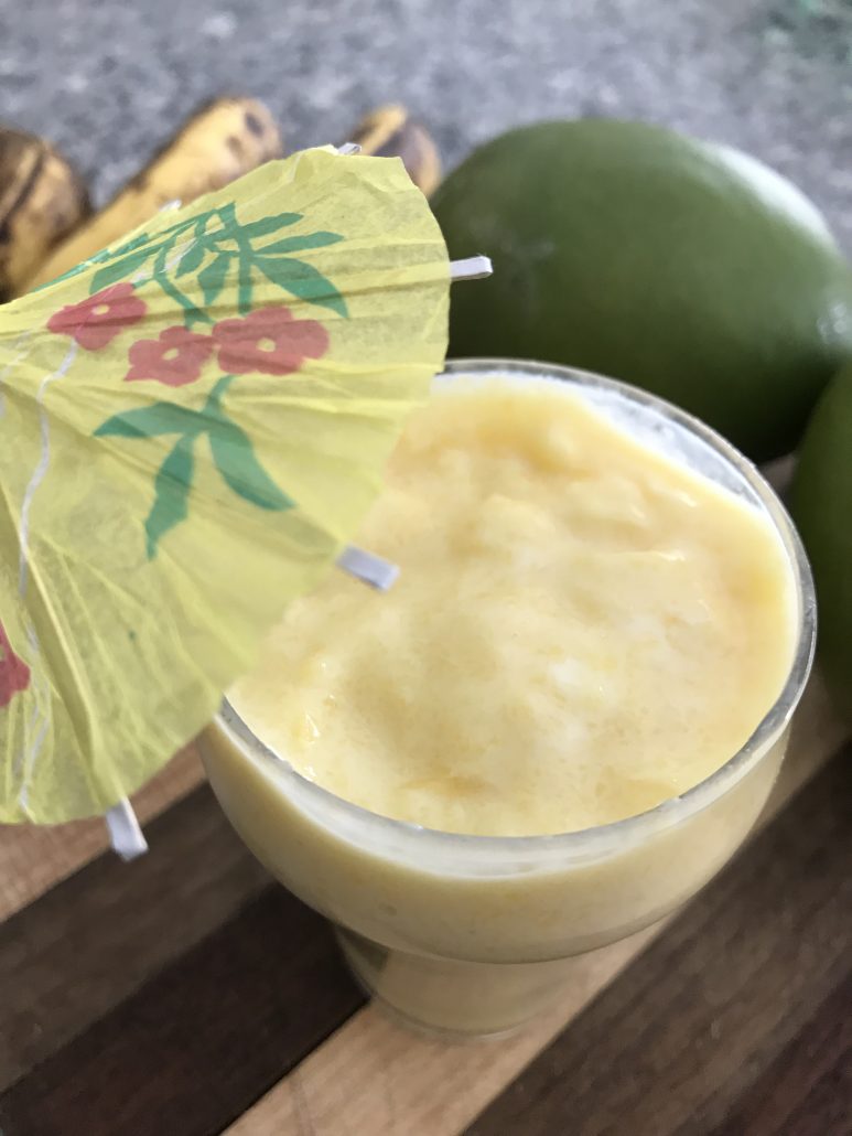 Thinly sliced banana and freeze for 1 hour. Chunk fresh mango and freeze for 1 hour.