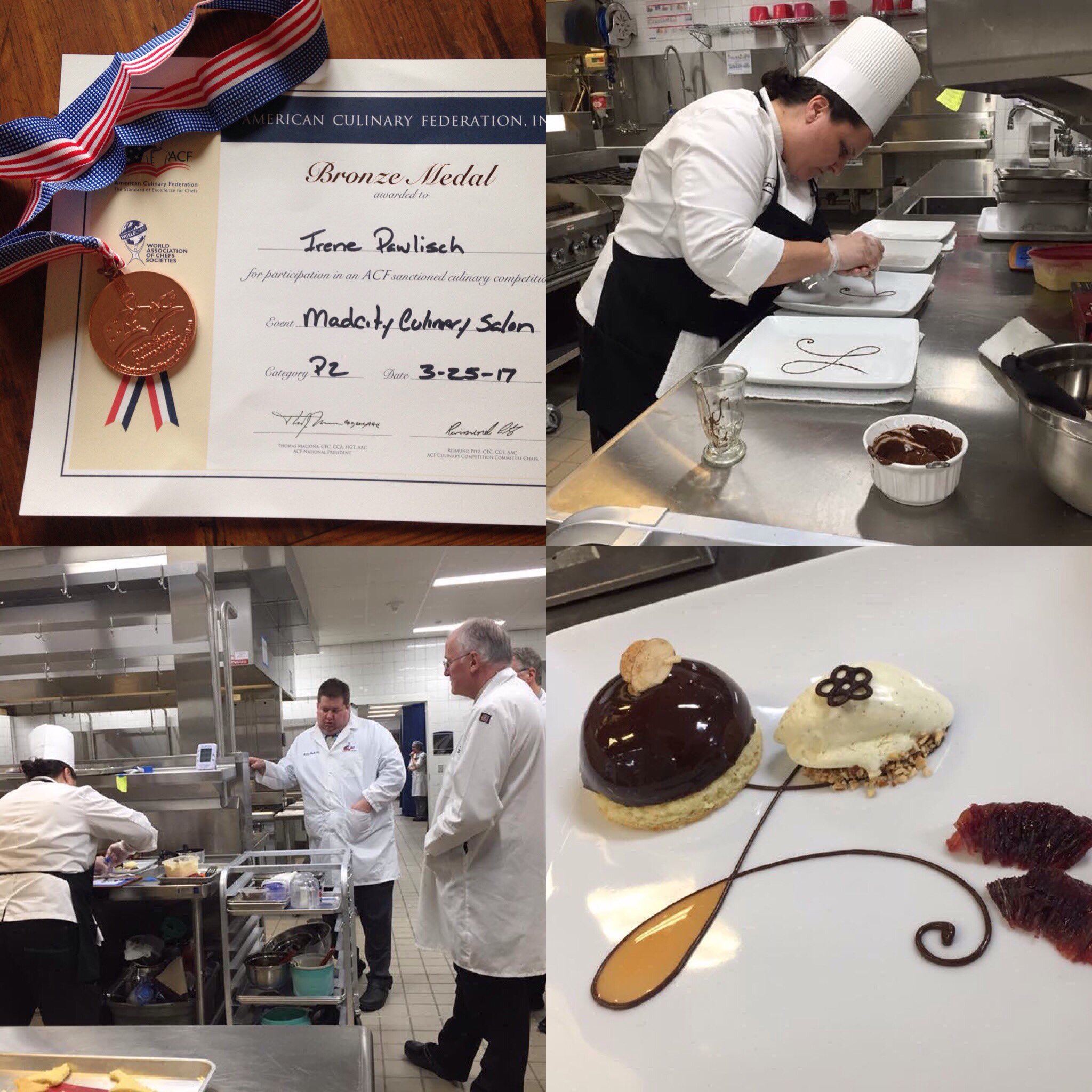Irene Pawlisch, regional chef for Taher, Inc., was awarded a bronze medal in the Mad City American Culinary Salon challenge, held in Madison, WI on March 25, 2017. Chef Irene competed with the best chefs in the Midwest and won the award from the ACF (American Culinary Federation) with her cold pastry entry. Judging is done by industry experts who travel around the country tasting food at the various competitions.