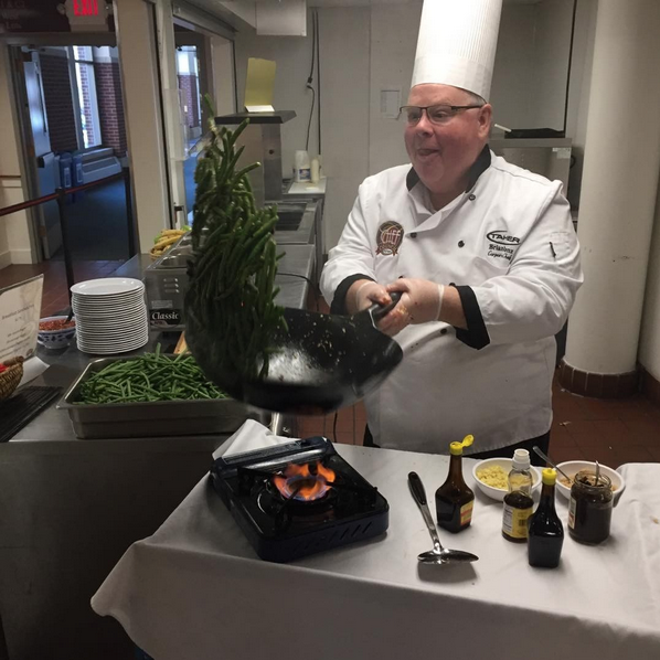 I love teaching students omelets! It’s easier than they think and they like the pan flip. Older students, I like to teach knife skills and the proper way to cut. With new chefs, I want to see them sautée and stir fry. Do they use the quick way or the correct way? I want to see them make a burger too. Do they use the right meat to fat ratio, do they use a flashy technique but results in a dry burger? Those are teachable moments.