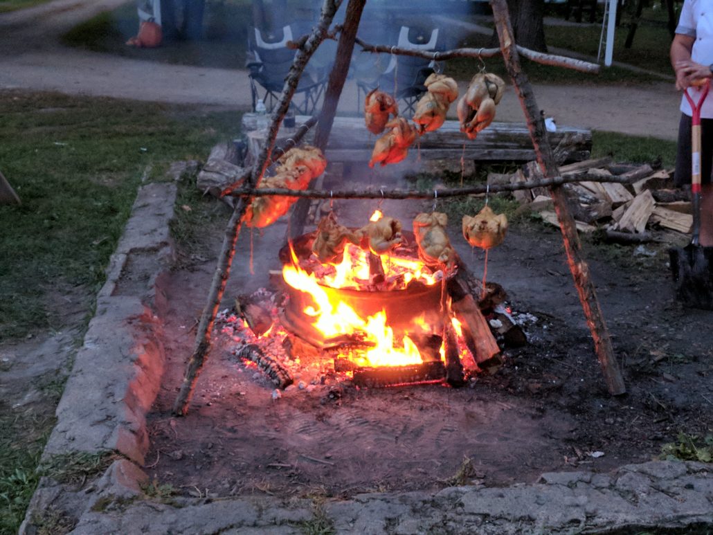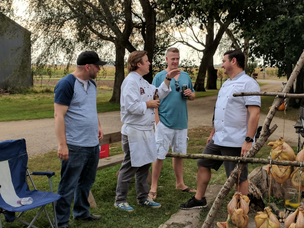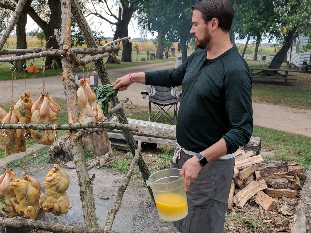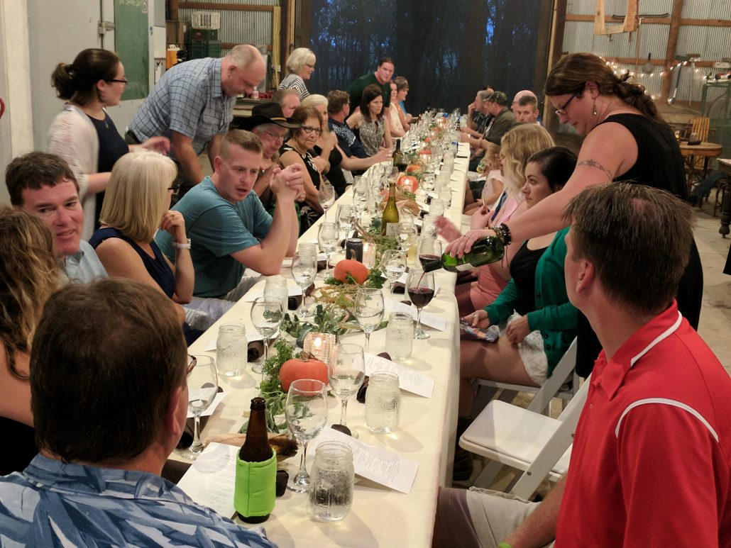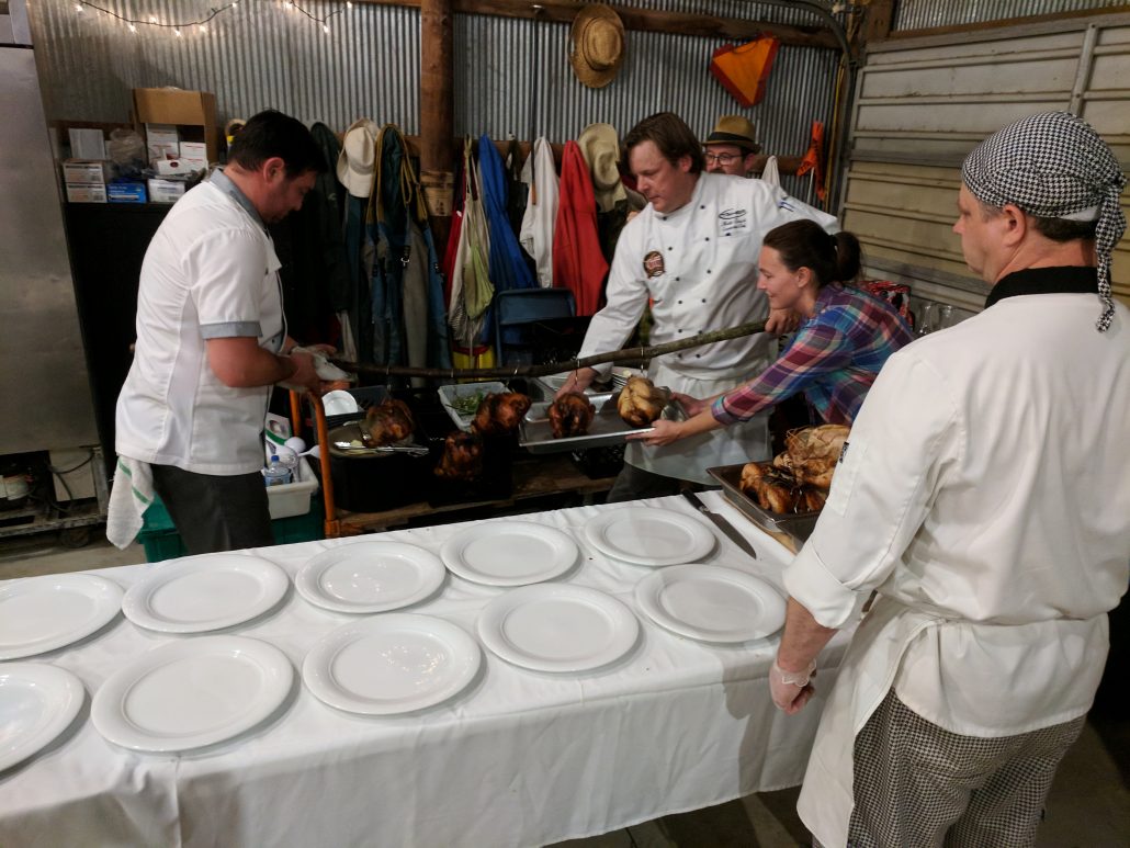 While the open fire chicken cooked, the dinner bell was rung calling all diners to the fire. With a quick explanation of the dishes they were about to eat, a quick thank you to the Lenz’ and the other producers, the diners headed inside the barn.