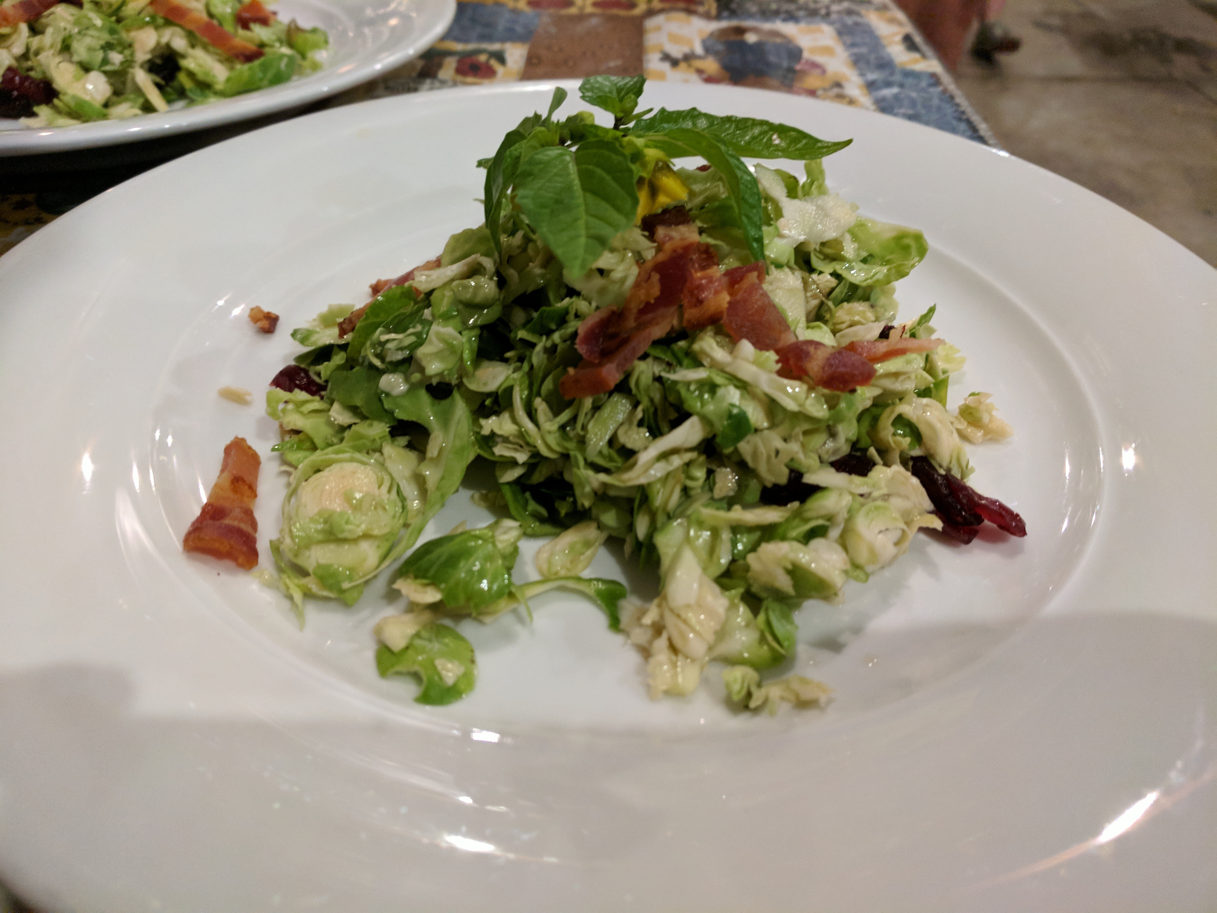 The first dish served was Chef Brian’s Shaved Brussel Sprout Salad. The dish consisted of shaved Brussel sprouts, smoked bacon, maple syrup, and an apple cider vinaigrette.