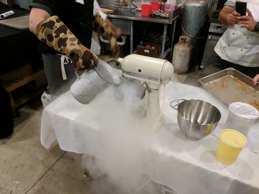 And finally came dessert. With a little bit (ok, a lot) of science, the final dish was assembled. Trent poured liquid nitrogen to make a very smooth ice cream.