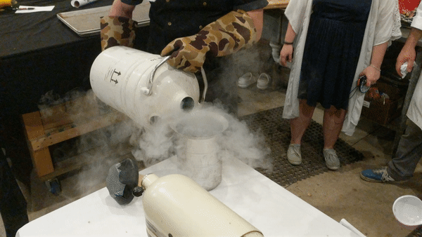 Why use liquid nitrogen? Besides looking totally cool, it makes the ice cream much smoother. Liquid nitrogen only exists below -320F and boils higher than that. Ice cream is basically just a milk product/ sugar, water, and air. When you slowly freeze normal ice cream, water has time to set up into larger crystals and it feels rougher. By using liquid nitrogen, you quickly drop the temperature on the mixture and the large ice crystals don’t have time to set up.